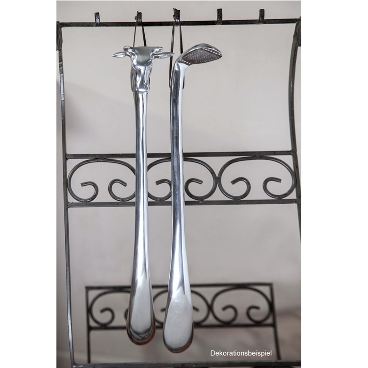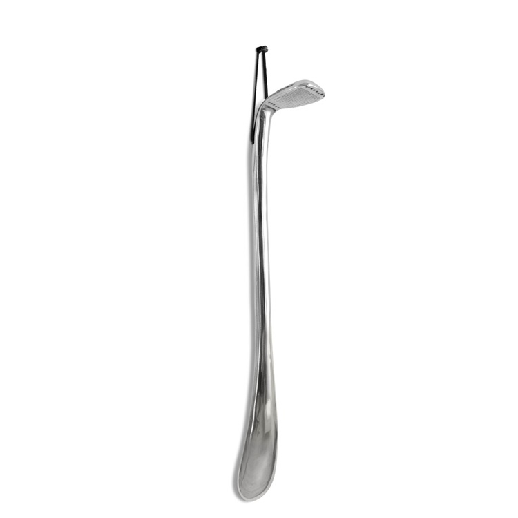 A golfütős cipőkanál anyaga alumínium. Nemcsak praktikus, hanem karakteres kiegészítője is lehet az előszobának.