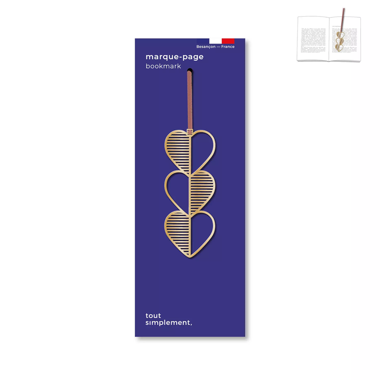 A három egymásba fonódó szív finom textúrája és a hozzá tartozó elegáns szalag gondoskodik róla, hogy mindig pontosan ott folytasd a történetet, ahol abbahagytad. Tökéletes kiegészítő egy izgalmas regényhez vagy egy inspiráló verseskötethez. A modern design és a klasszikus romantika találkozása.