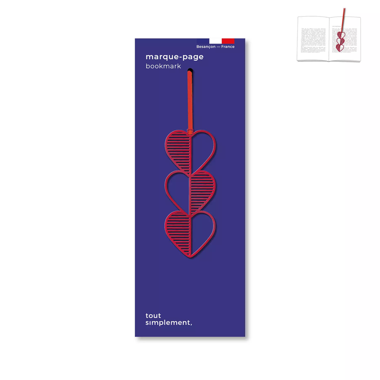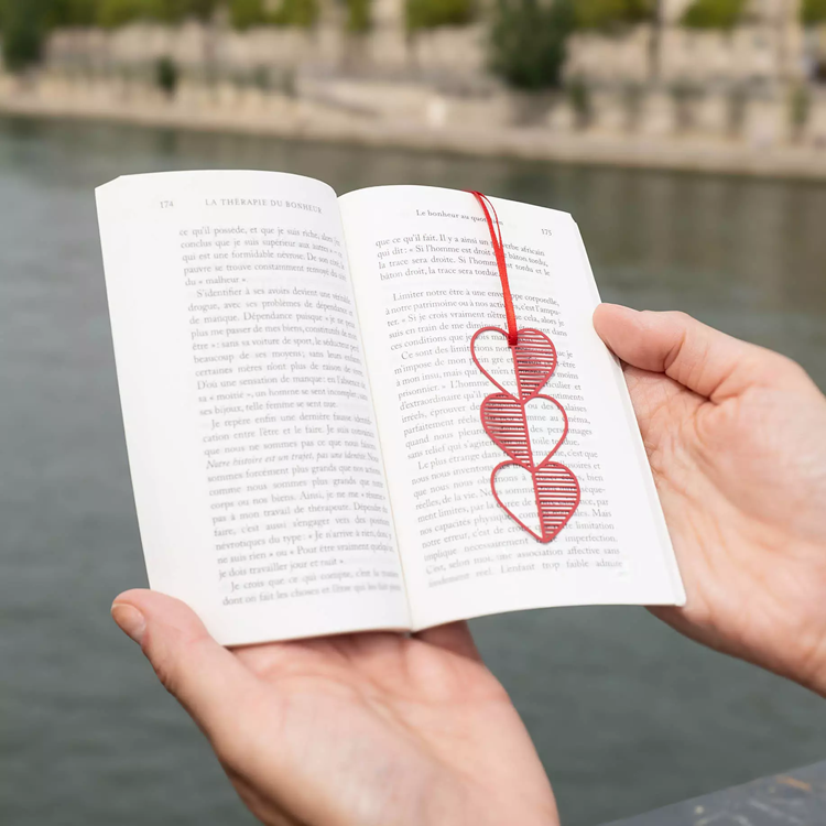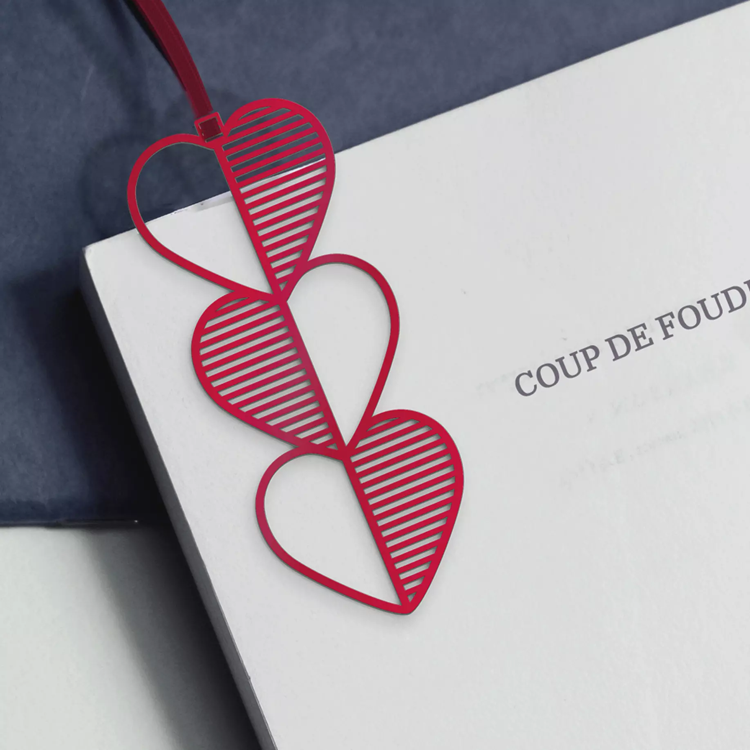 A három egymásba fonódó szív finom textúrája és a hozzá tartozó elegáns szalag gondoskodik róla, hogy mindig pontosan ott folytasd a történetet, ahol abbahagytad. Tökéletes kiegészítő egy izgalmas regényhez vagy egy inspiráló verseskötethez. A modern design és a klasszikus romantika találkozása.