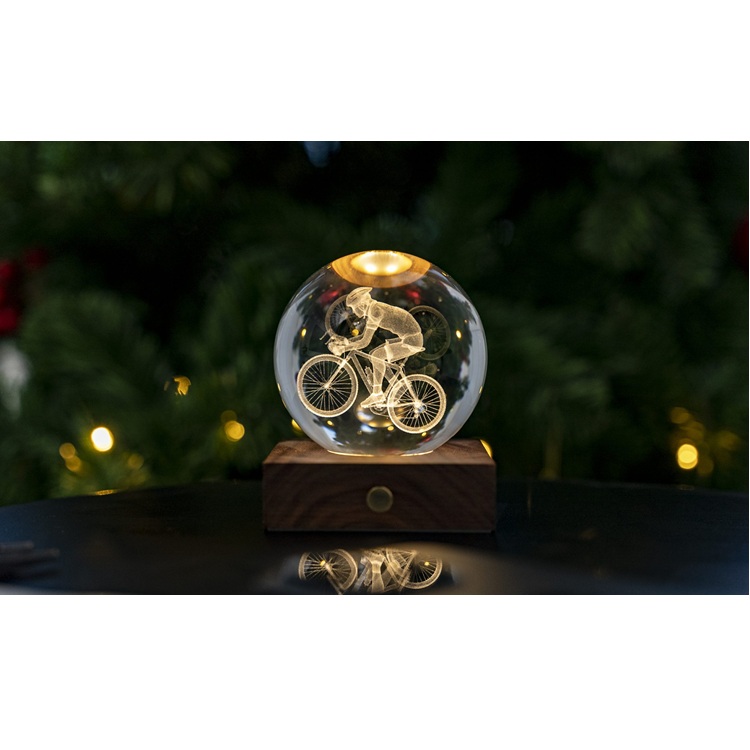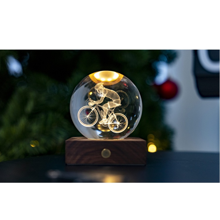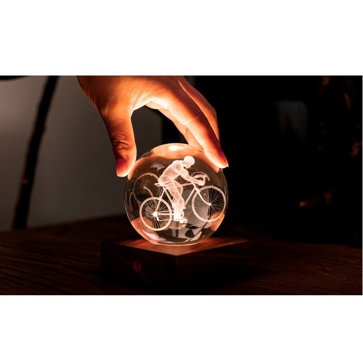 Varázsoljon különleges hangulatot otthonába az Amber Crystal Light kristálylámpával. Szenvedély, dinamika és elegancia. Ez a különleges hangulatlámpa a kerékpározás szabadságát ötvözi a minimalista luxussal. A kristálygömb belsejében egy precíziós lézerrel gravírozott kerékpáros alakja látható, amely a beépített LED-ek borostyánsárga fényében szinte életre kel és mozgásba lendül.