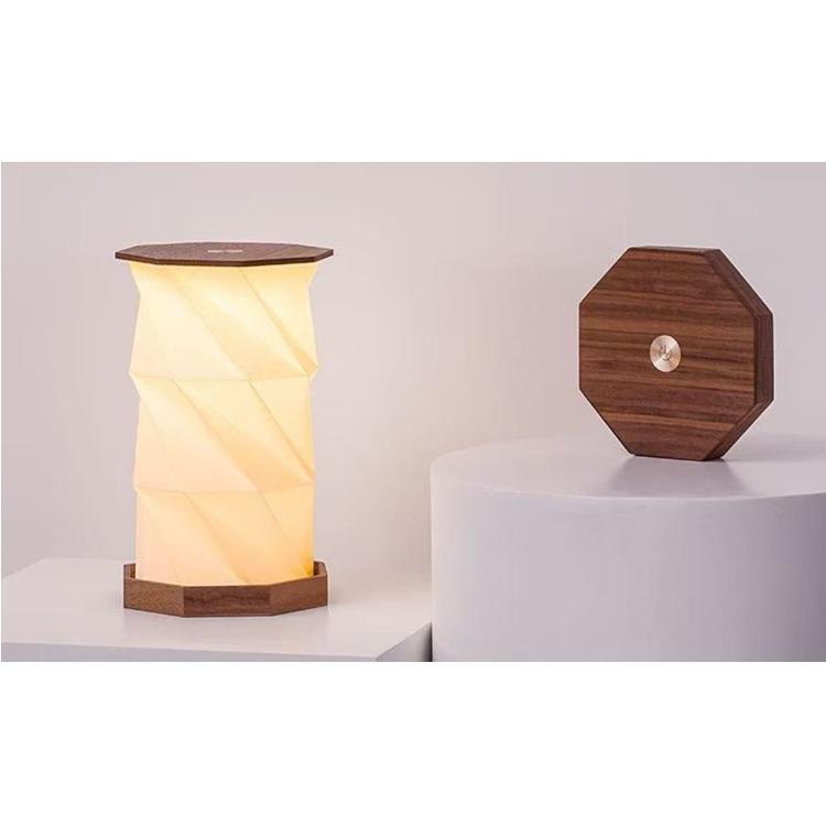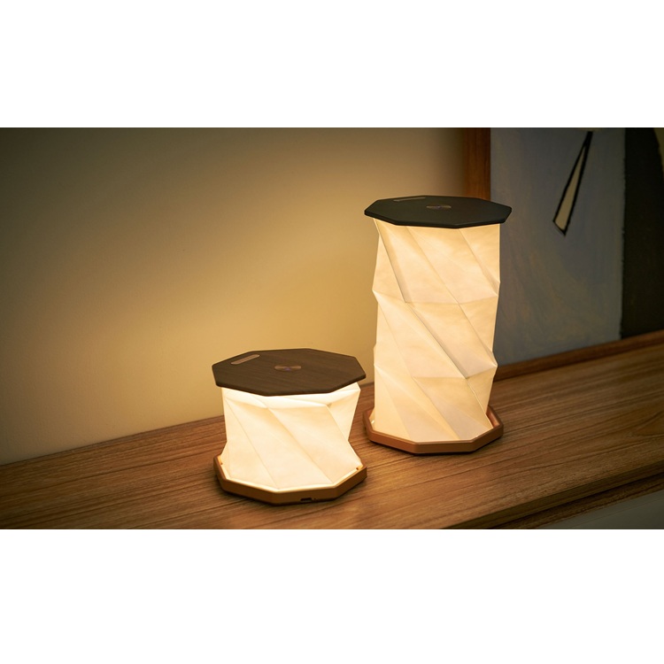A lámpa különlegessége az interaktív kialakításában rejlik: a hatszög alakú testet egyszerűen megcsavarva egy elegáns, fényt sugárzó formává alakul. A redőzött speciális rostpapír borítás nemcsak látványos, hanem tartós és kellemes tapintású is.