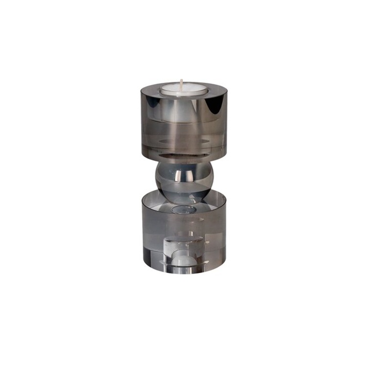 A tömör, színezett üveg rétegzett kialakítása egyedi fénytörést biztosít, amely mécses használatakor meghitt ragyogással tölti meg a teret. A hengeres formát középen lágy gömb elem teszi karakteressé, így a mécsestartó önmagában is dekoratív design tárgy.