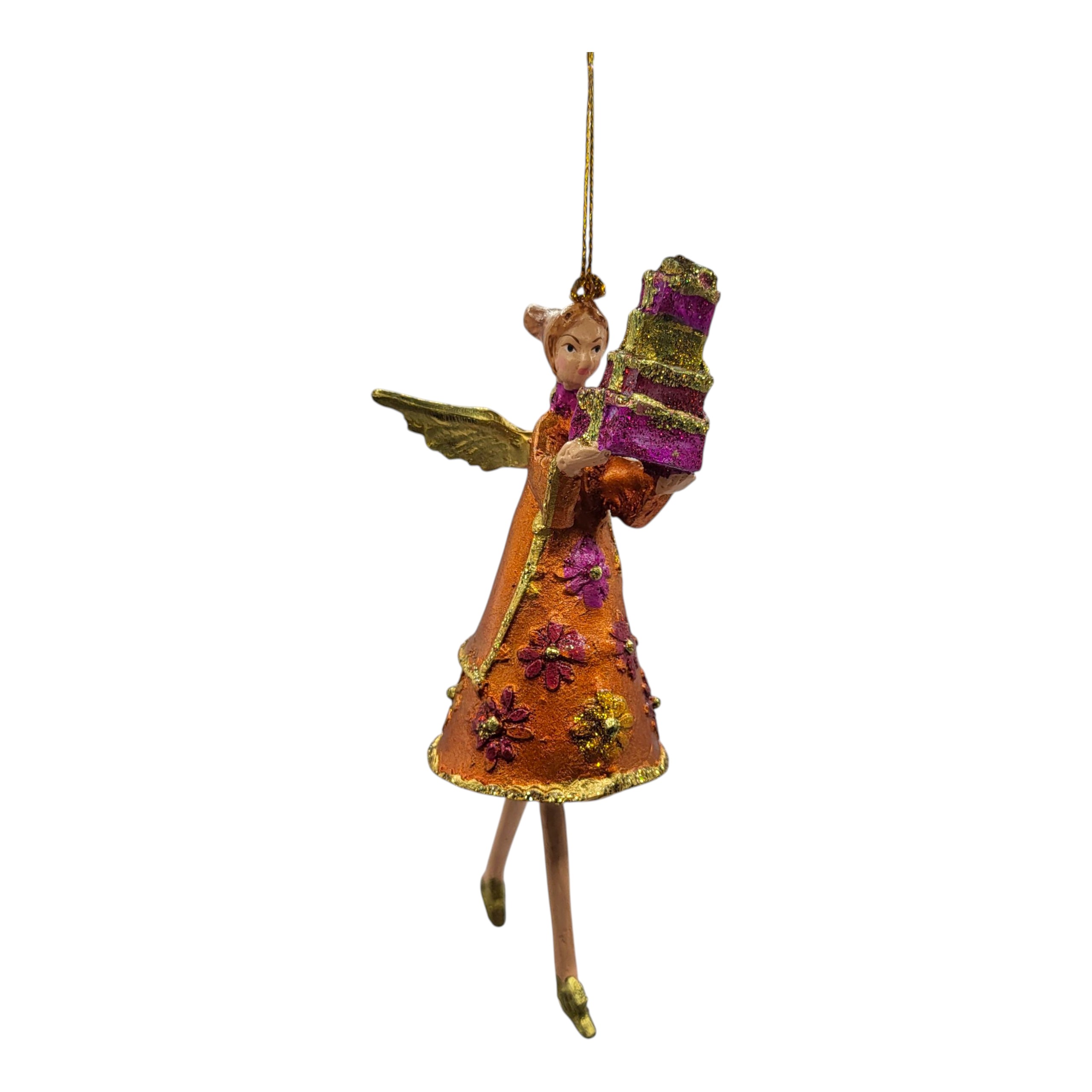 Ez a különleges angyal dísz igazi éke lehet otthononának vagy karácsonyfájának. Arany szárnyai, csillogó részletei és egyedi formája varázslatos, ünnepi hangulatot árasztanak.