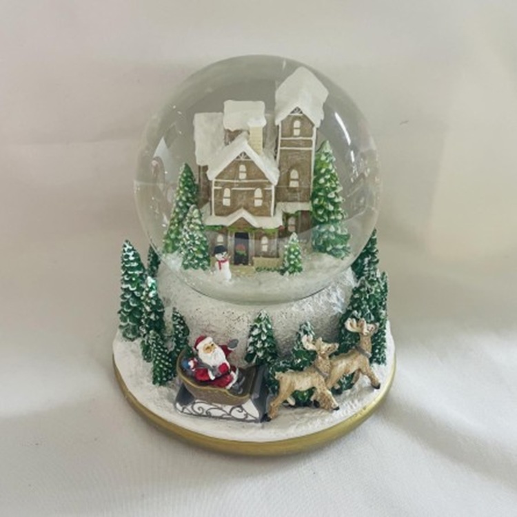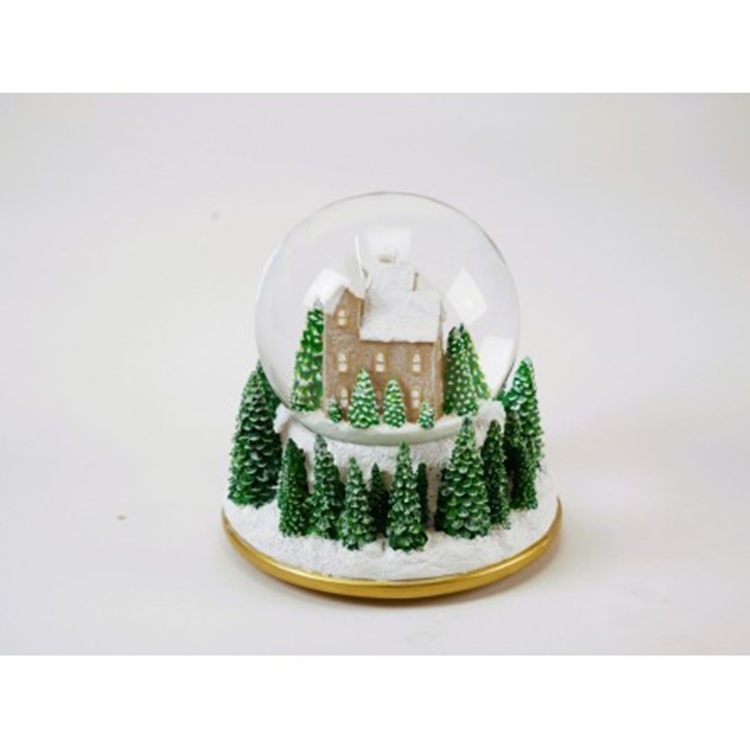 Ez a hógömb a vidéki karácsonyok eleganciáját és az ünnepi meghittséget hozza el Önnek. Egy időtálló darab, amely a letisztult bájával hívja fel magára a figyelmet. A gömb középpontjában egy kétszintes, hófödte, elegáns rezidencia áll. A részletgazdag épület hűen tükrözi a téli, meghitt otthon képét. A házat körülvevő sűrű, havas fenyőfák és a hóember teremtik meg a békés, csendes téli hangulatot.
