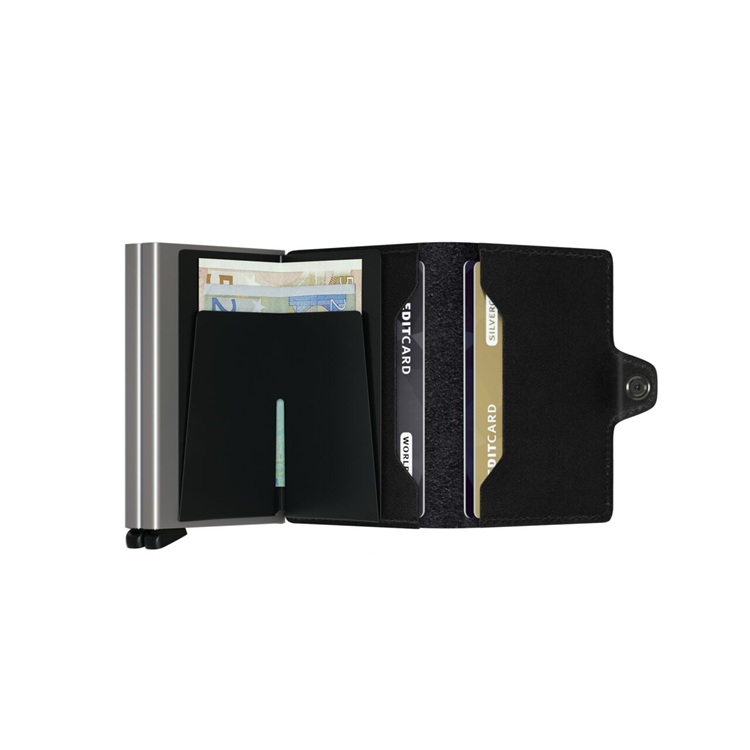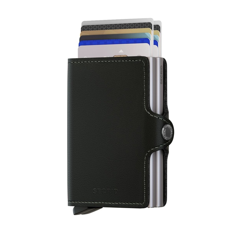 A Twinwallet két kártyatartójában akár 16 kártyának, papírpénznek és nyugtáknak is van hely, de továbbra is kompakt méretű. Szabadalmaztatott mechanikája lehetővé teszi, hogy egy egyszerű mozdulattal csúsztassa ki a kártyáit. Az alumínium véd a sérülésektől és a nem kívánt adatlopástól.